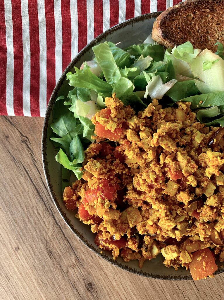 Viszont a tofurántottával engedékeny vagyok. Bár felismerhető a különbség a tojásos és a vega verzió között, azonban nekem visszahozza azokat az álmos, lassú hajnalokat, ahol a septibenkétfalatnál több idő jutott a reggeli elkészítésére.